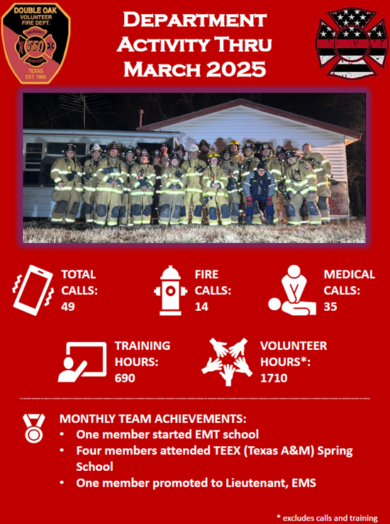 Double Oak Volunteer Fire Department – March 2025 Highlights